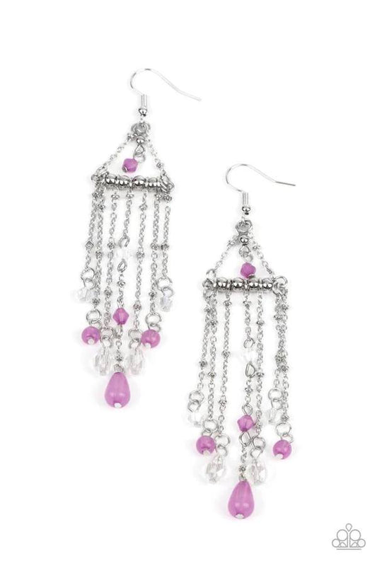 Bubbly Bling - Purple Bead White Rhinestone Silver Fishhook Earrings