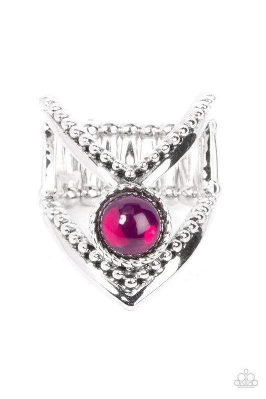 Bubbles for Brunch - Pink Cat's Eye White Rhinestone Silver Ring