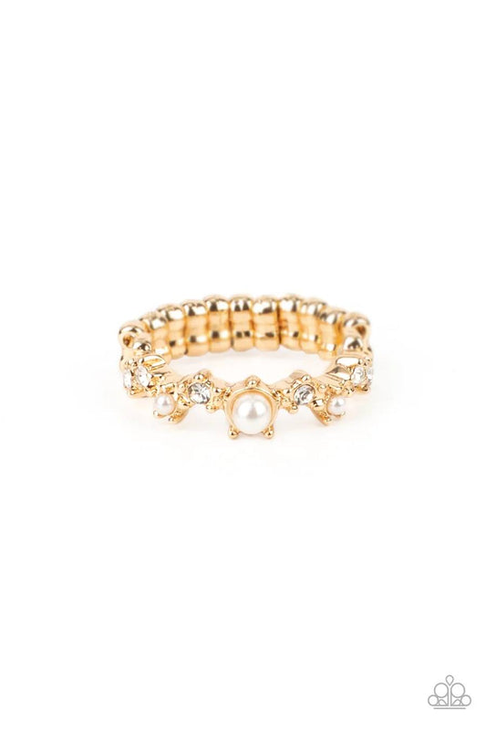 Envious Enrapture - Silver Pearl Rhinestone Ring