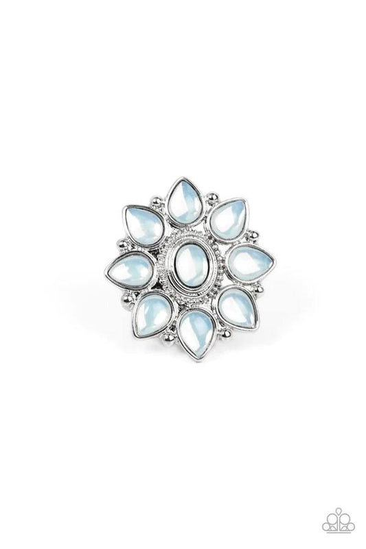 Butterfly Bustle - Blue Rhinestone White Resin Rose Ring