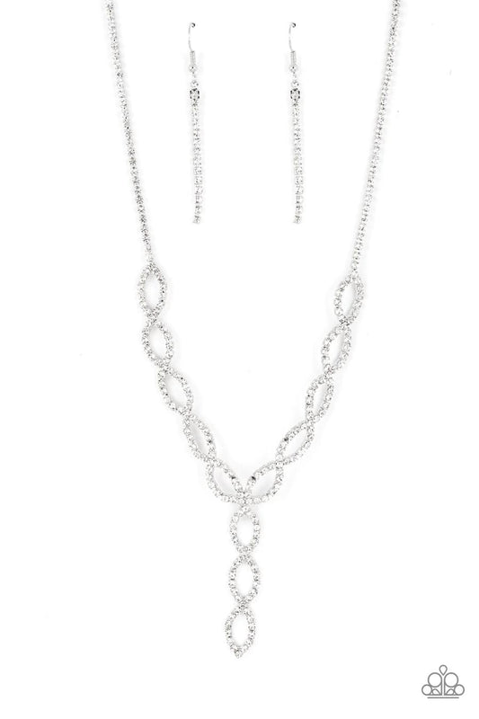 Infinitely Icy - White Rhinestone Y Silver Short Necklace