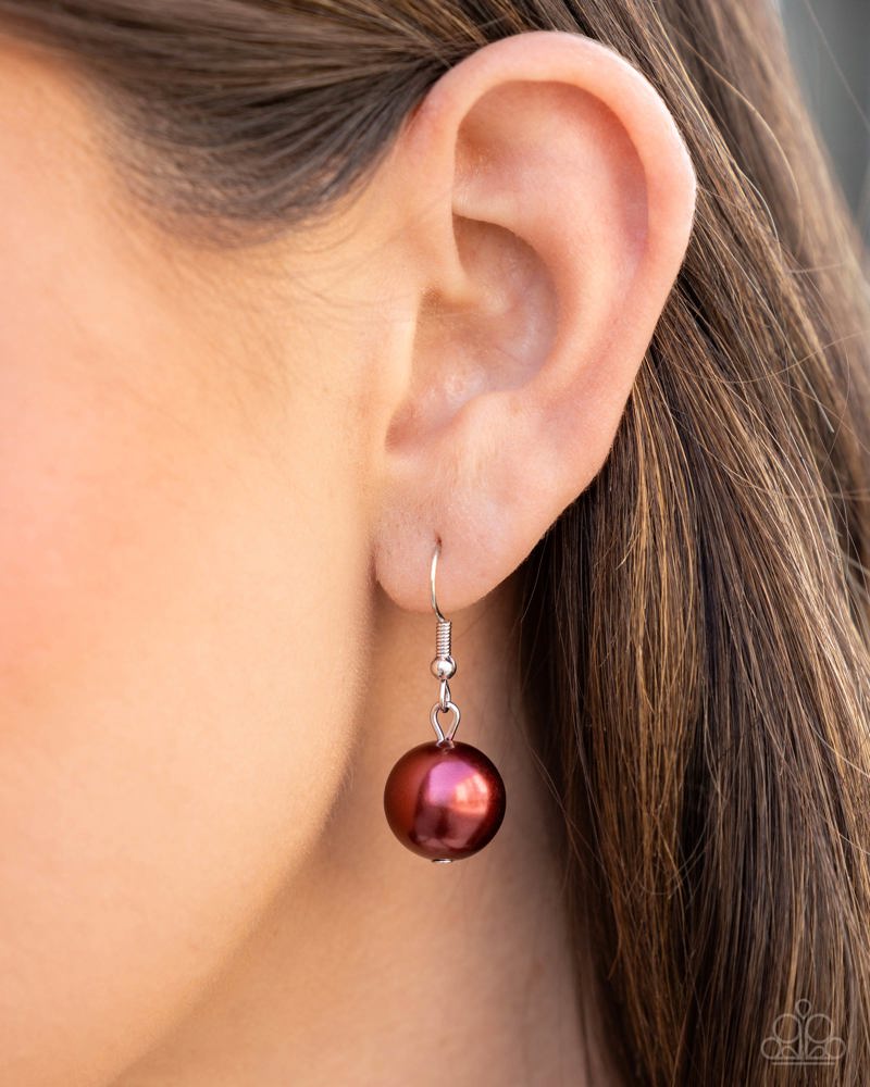 Brown: All The Trimmings - Brown Ribbon Pearl and Silver Bead Long Necklace - Blockbuster, #P2RE-BNSV-017XX (Sold Separately!)