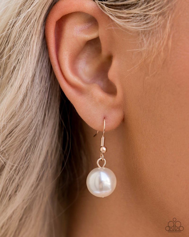 White: Designated Diva - White Rhinestone, Pearl, Tassel, and Crystal Y Long Necklace - Blockbuster, #P2RE-GDXX-518XX (Sold Separately!)