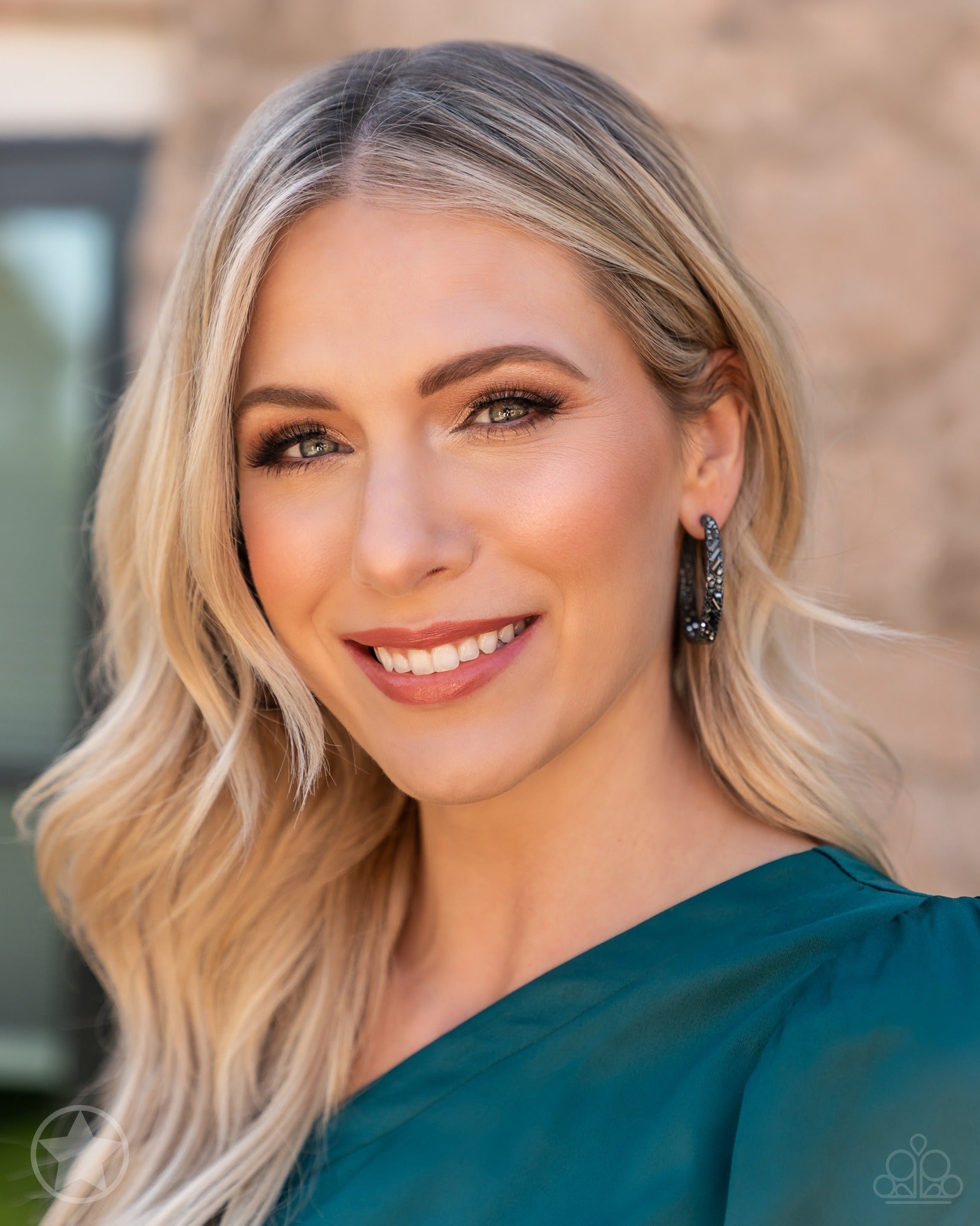 GLITZY By Association - Black with Hematite Rhinestones Hoop, Post Earrings - Blockbuster, #P5HO-BKXX-001XX