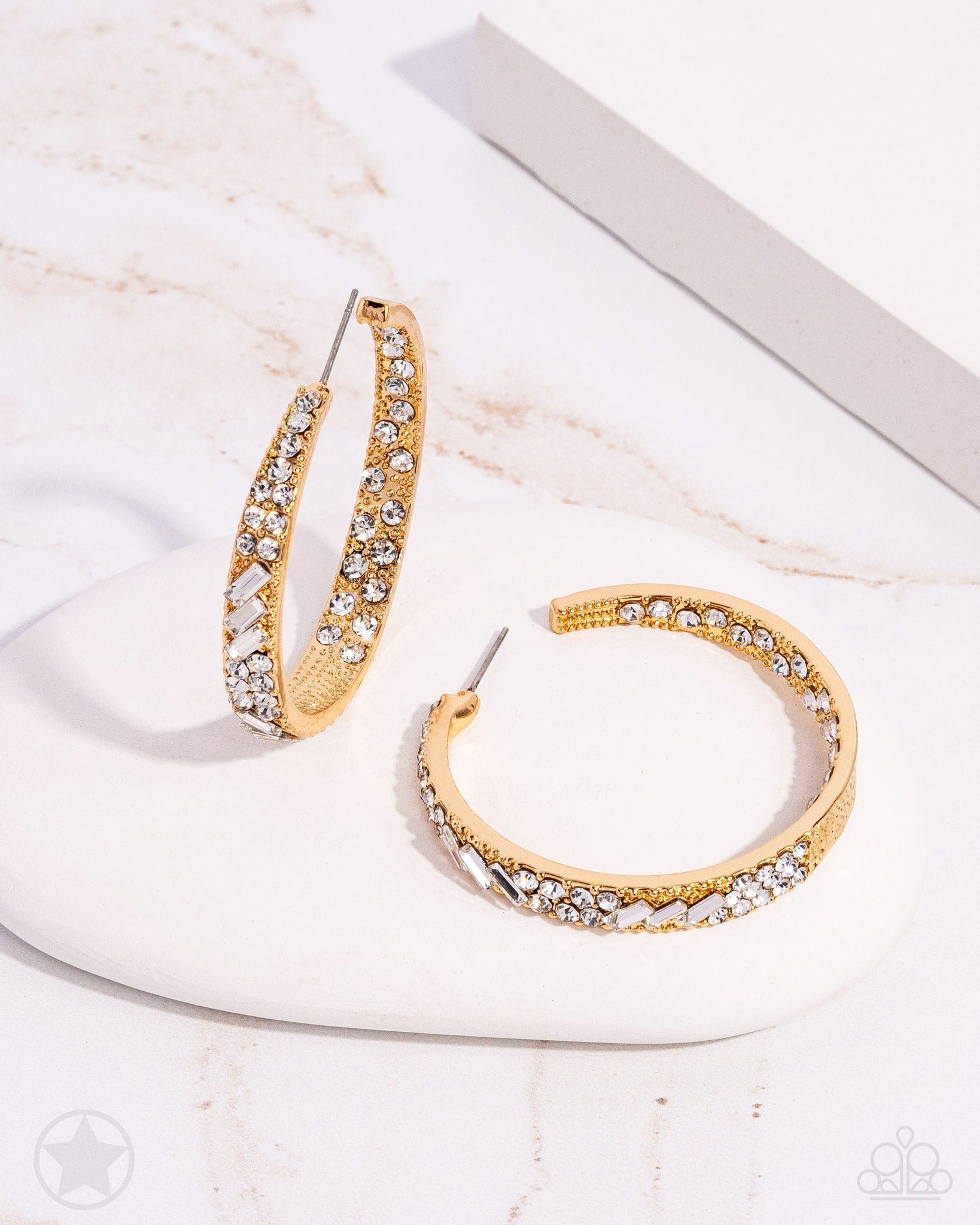 GLITZY By Association - Gold with White Rhinestones Hoop, Post Earrings - Blockbuster, #P5HO-GDXX-299XX