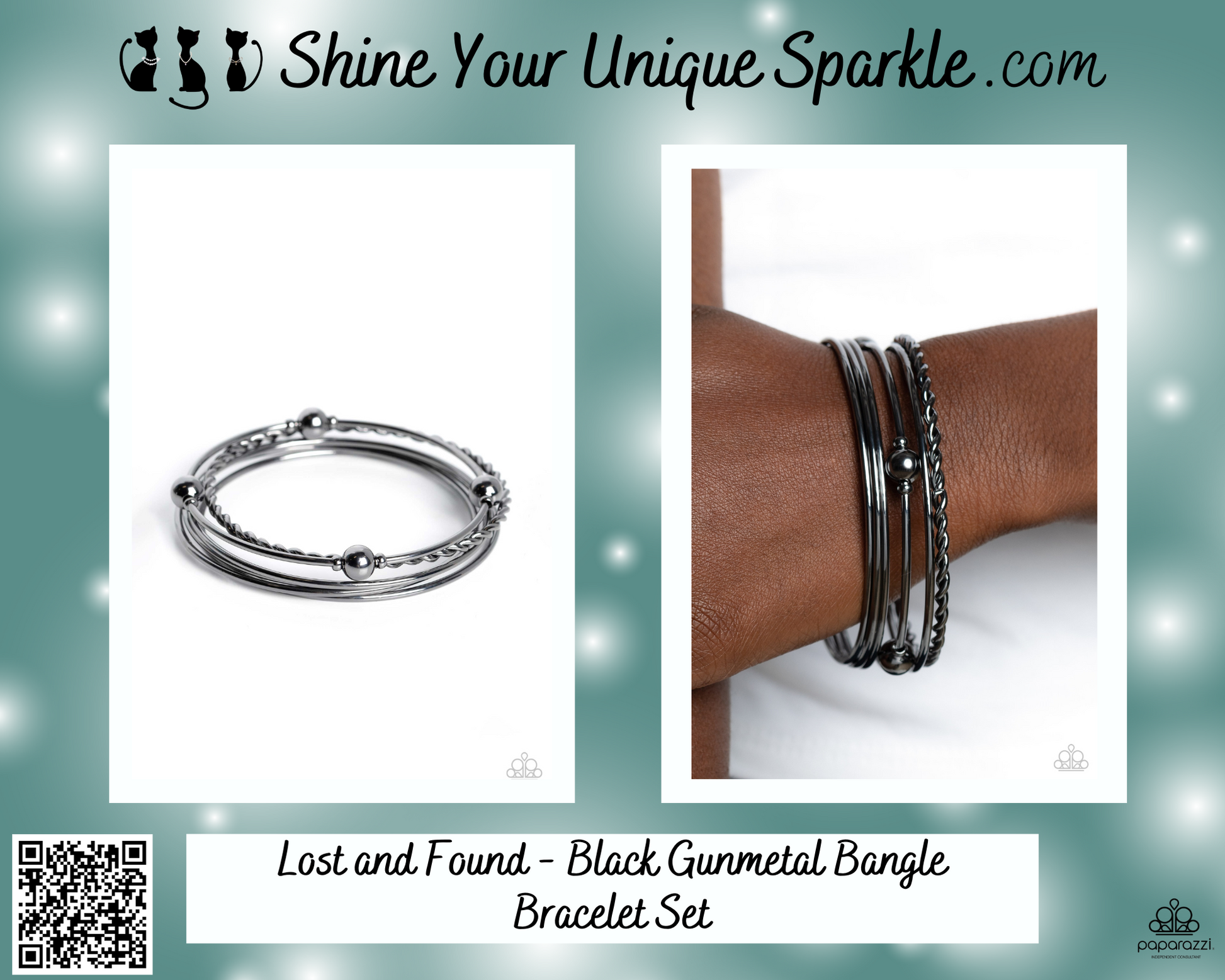 Lost and Found - Black Gunmetal Bangle Bracelet Set