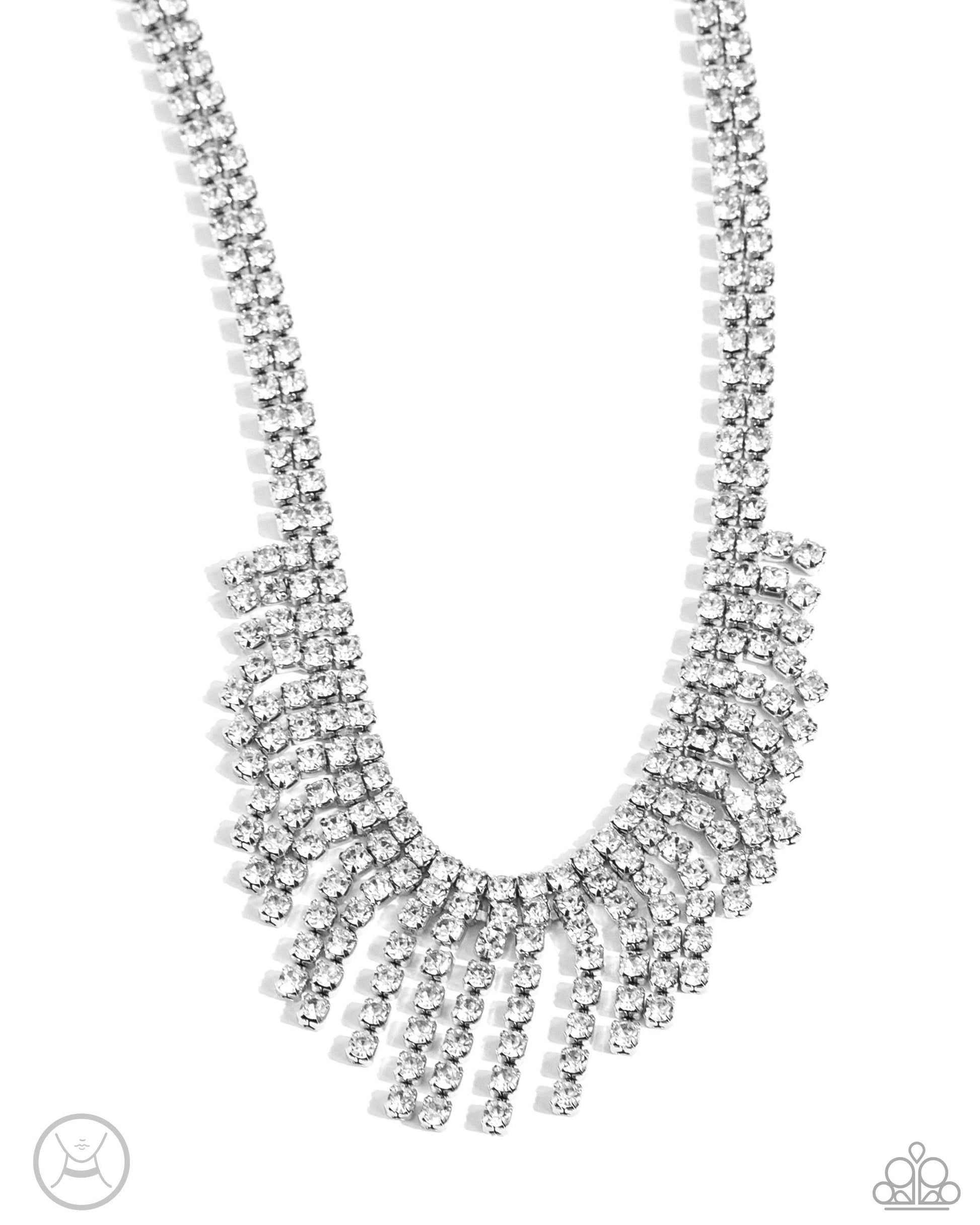 Daring Decadence - White Rhinestone Fringe Silver Choker Necklace, #P2CH-WTXX-075XX