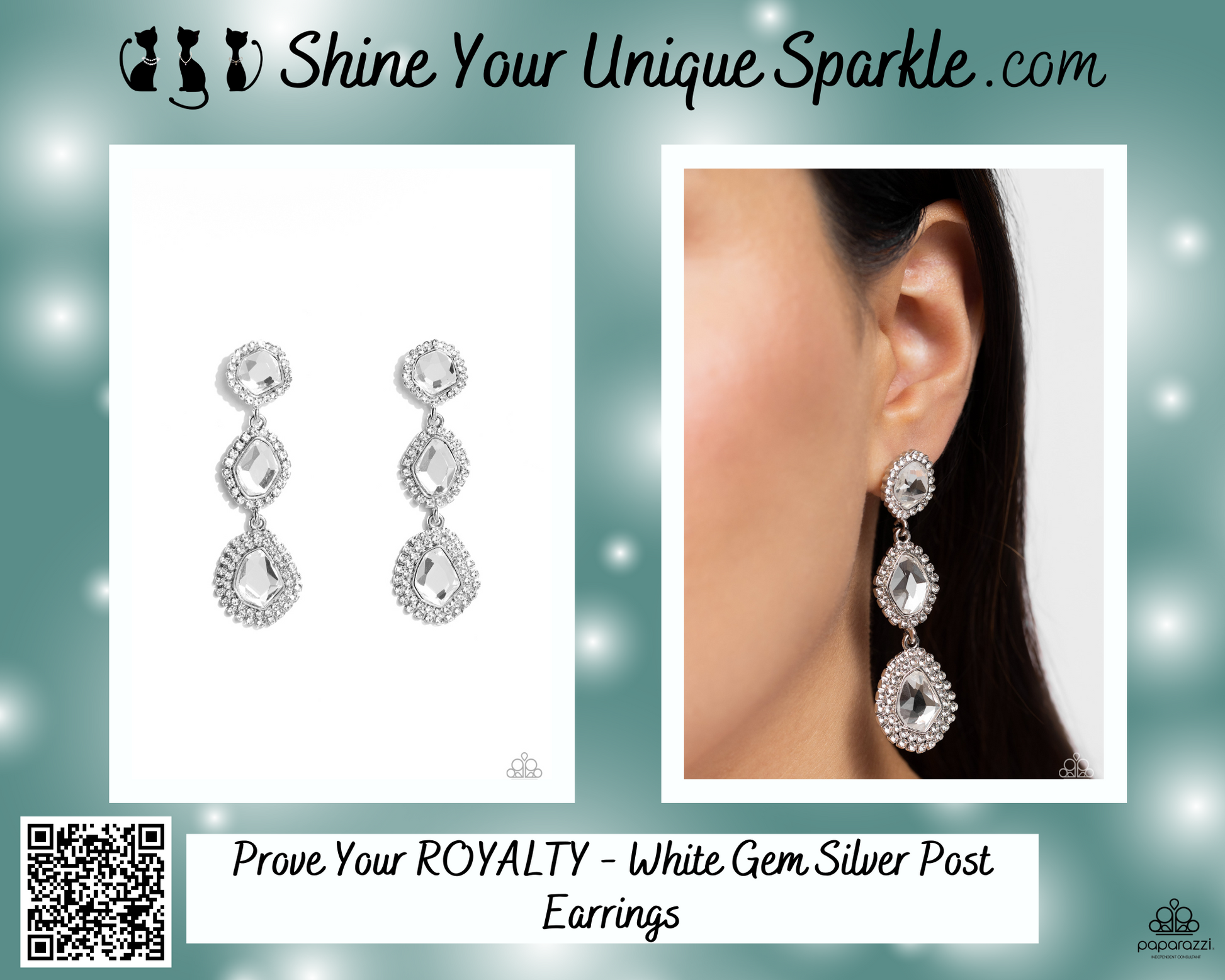 Prove Your ROYALTY - White Gem Silver Post Earrings
