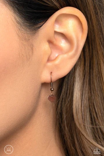 Infused along a dainty copper cascade chain, sleek copper hearts coalesce around the neckline for a subtly romantic finish. Features an adjustable clasp closure. Sold as one individual choker necklace. Includes one pair of matching fishhook earrings.