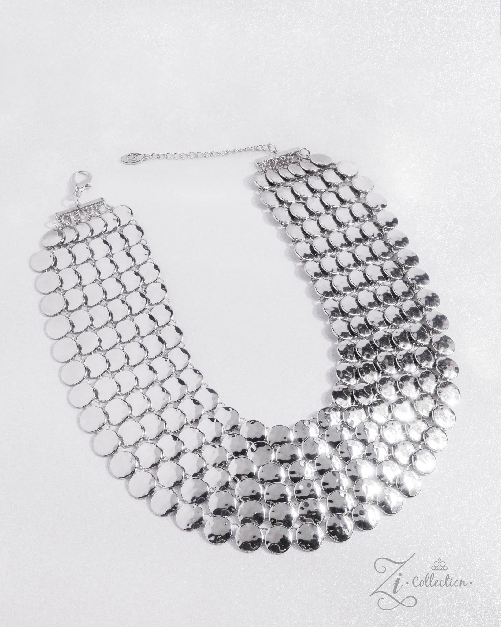 Featuring a subtly hammered finish, a collection of shiny silver discs delicately connect into statement-making rows, cascading below the neckline in layers and showcasing their intense detail and highly reflective luminescence. Features an adjustable clasp closure. Sold as one individual necklace. Includes one pair of matching earrings.
