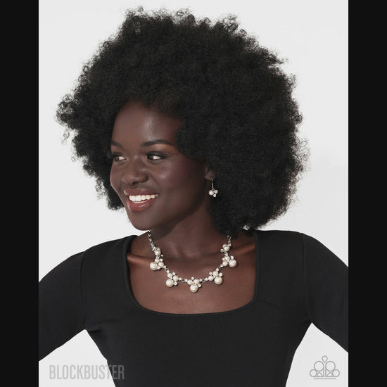 Toast to Perfection - White Rhinestone and Pearl Necklace - Blockbuster