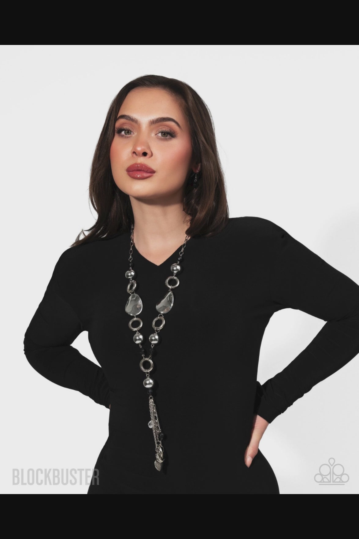 Total Eclipse of the Heart - Silver and Black Bead Charm Y Long Necklace - Blockbuster