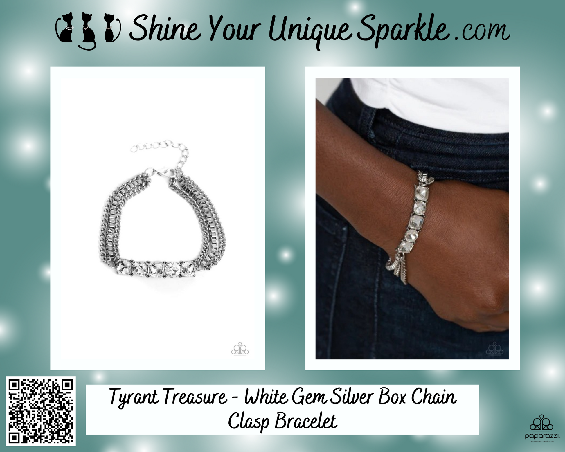 Tyrant Treasure - White Gem Silver Box Chain Clasp Bracelet